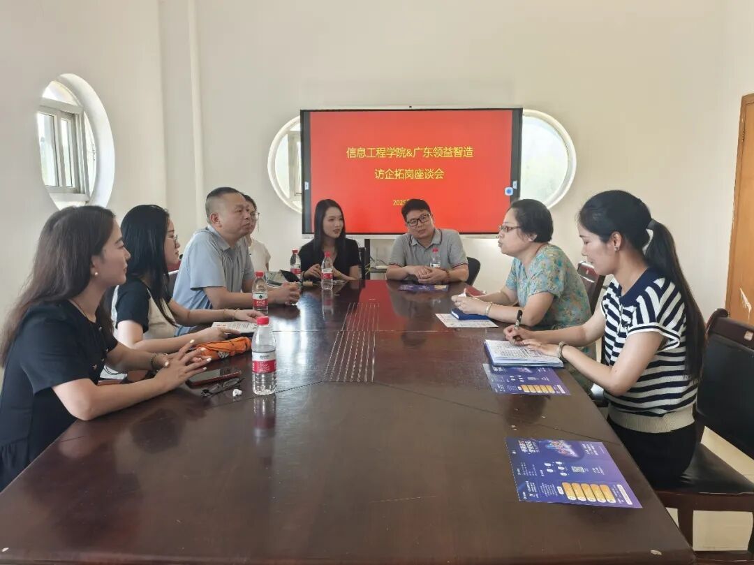 为进一步强化校企合作,精准搭建毕业生与企业的就业桥梁,助力信工学子获取优质就业机会,2025年9月15日下午,信息工程学院开展访企拓岗座谈会,与广东领益智造股份有限公司就校招合作及人才培养联动进行深入沟通,学院党委副书记万晖、就业专干沈杨扬出席。