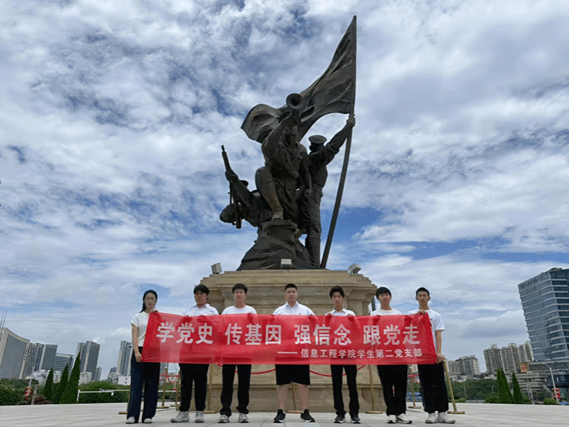 为迎接中国共产党成立104周年,回顾党的光辉历程,歌颂党的丰功伟绩,弘扬伟大建党精神,6月27日上午,信息工程学院学生第二党支部积极组织新发展党员前往江西省博物馆与建军雕塑广场,开展“学党史 传基因 强信念 跟党走”主题党日活动。
