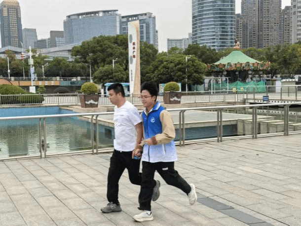 在活动中,跑步环节的设计充满温情与专业。视障、听障跑者在志愿者“陪跑员”的一对一陪伴下开启征程,陪跑员通过特制的“陪跑绳”与视障、听障跑者连接,以细微的绳感传递方向、速度信号。每一位视障、听障跑者在安全、温暖的陪伴中,尽情感受运动的激情与魅力。