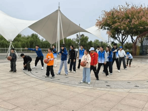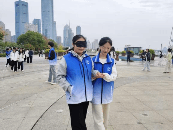 学院志愿服务团队精心筹备,除赛事服务外,还策划了盲人生活场景模拟与公益互动游戏。跑步环节结束后,参与者在盲人走路体验区佩戴眼罩,由志愿者搀扶前行,切身感受视障者出行不易;篮球传递活动中,大家协作传接篮球,模拟视障群体“以听觉、触觉感知环境”的状态,在趣味互动中体会“协作”与“信任”的特殊意义。这些环节让志愿关怀延伸至认知共情,深化了参与者对公益的理解。