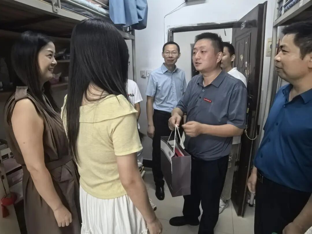 “从哪里来?”“对宿舍环境满意吗?”“有没有什么困难?”每走进一间宿舍,学院领导都与新生们亲切交谈,细致了解同学们的家乡背景、入住感受和适应情况,并嘱咐大家尽快转变角色、珍惜大学时光、做好学业规划,以积极饱满的状态迎接新的学习阶段。