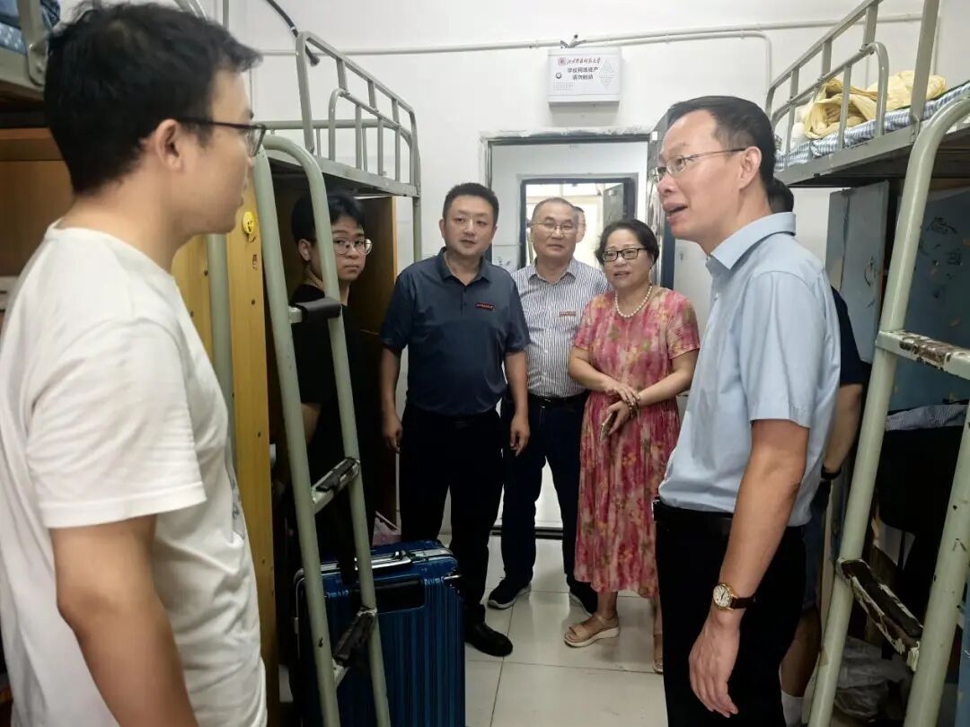 在新生报到的重要日子里,为帮助初入校园的本科生新生与研究生新生快速适应新环境,传递学院的关怀与温暖,2025年9月13日下午,信息工程学院党委书记鲁辉、院长杨凡、党委副书记万晖、副院长宗文军和全体辅导员、新生班主任走进新生宿舍,开展了一场亲切的走访慰问活动。