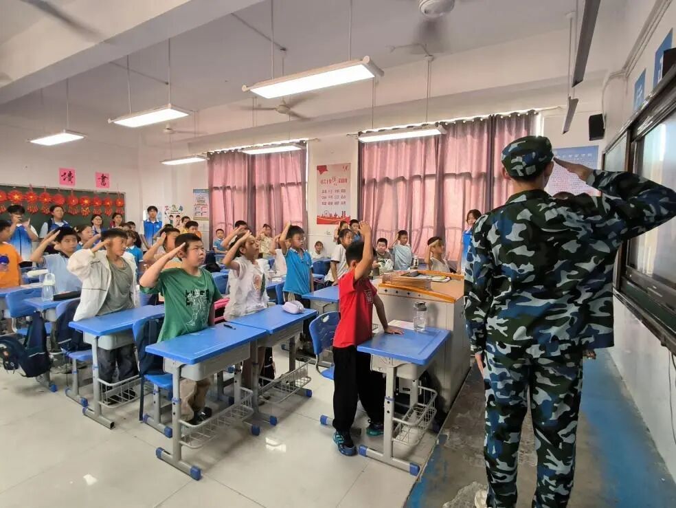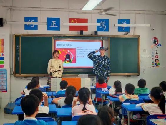 历时约20分钟的宣讲内容充实、逻辑清晰、重点突出,同学们端坐聆听、目不转睛,深深沉浸在红色文化的熏陶中,真切感悟革命先辈的初心使命与矢志不渝的奋斗精神。宣讲尾声,全体师生起立,面向国旗肃立致敬,伴随着庄严的旋律,同学们挺直腰杆、眼神坚定而崇敬,爱国情怀在这一刻深深扎根心底。