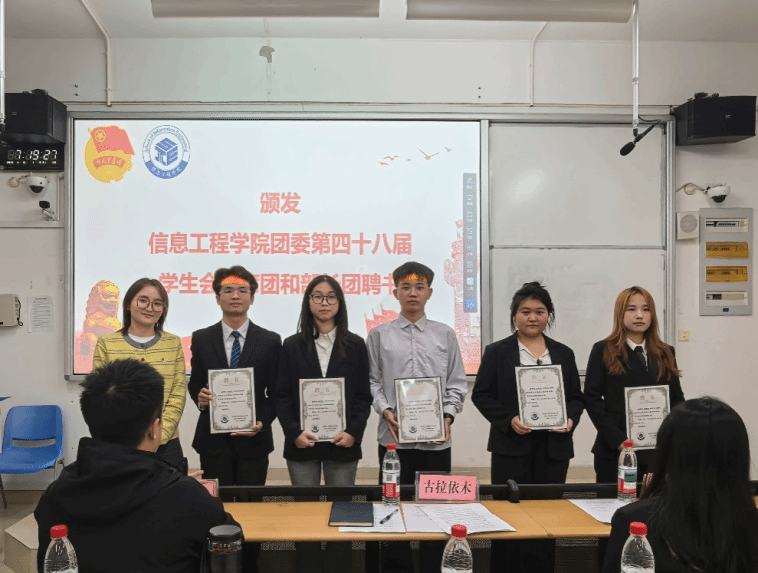 青春正当时,奋进当有为。为明确工作方向、凝聚团队力量,构建高效协作的学生工作体系,2025年11月10日,江西科技师范大学信息工程学院在红角洲校区W1202教室成功召开了第四十八届团委、学生会全体大会。学院团委负责人古拉依木、第四十七届学生会团委副书记(学生)谭聪、第四十七届学生会主席团成员李欣,及第四十八届团委、学生会全体成员共同参会,一起见证新一届学生工作的启航。