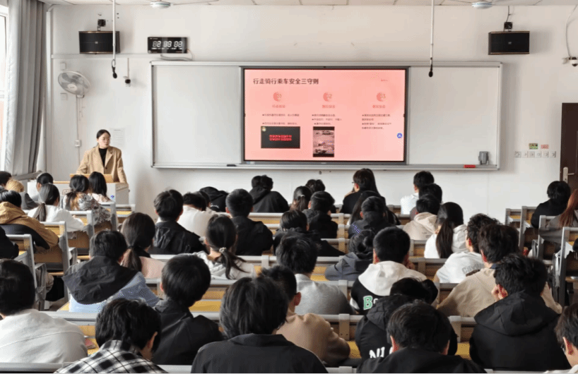 讲座上,魏春玉老师以学生日常生活场景为切入点,围绕“消防安全”“财产安全”“交通安全”等八大模块,用幽默金句和通俗案例层层递进、深入浅出,让安全理念真正深入人心。她表示,安全事故往往源于侥幸心理与薄弱的安全素养,唯有警钟长鸣、防患未然,方能行稳致远。