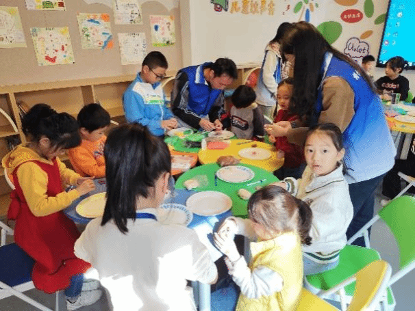 “巧手捏立冬”创意手工环节将活动气氛推向高潮。志愿者以专业耐心的态度开展细致指导,孩子们满怀热忱与期待,抓取色彩斑斓的彩泥,任想象力在指尖驰骋。孩子们在动手实践中锤炼手眼协调能力,更于潜移默化中深化对立冬饮食习俗与文化内涵的认知,文化认同感与自豪感油然而生。活动尾声,“一元五角”团体游戏让孩子们在欢笑中体验协作与默契。孩子们在集体中感受信任与配合的重要性,真正将“团结一心”内化于心、外化于行。