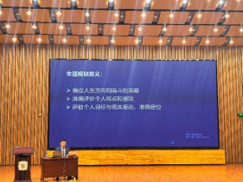 随后,孙海波作了题为“《未来事业实验室》大学生职业发展的推演与布局”的主题讲座,讲座围绕“作为一名大学生,我们如何做好即将到来的事业定位?我们如何提前推演、布局关键经历?我们如何控制节奏实现人生‘一阶段’的事业目标?”等一系列问题,系统阐述了职业生涯规划的定义、意义、关键要素、现实需求与基本原则。他指出,每个人都应确立清晰的生涯规划,遵循“三定原则”——定方向、定地点与对自己准确定位,并切实执行生涯诊断、目标设定、发展策略与实施管理的“四步曲”,为个人职业发展奠定坚实基础。除此之外,他还强调职业生涯中目标的重要性,他表示目标的责任主体一定要明确,制定目标一定要坚决,根据目标找方法才有好结果。目标是需要管理的,不管理目标,目标就会莫名其妙地丢失。孙海波先生结合天鹅、大虾和梭鱼和爱丽丝梦游仙境等童话故事,生动形象地讲述了管理目标的重要性。