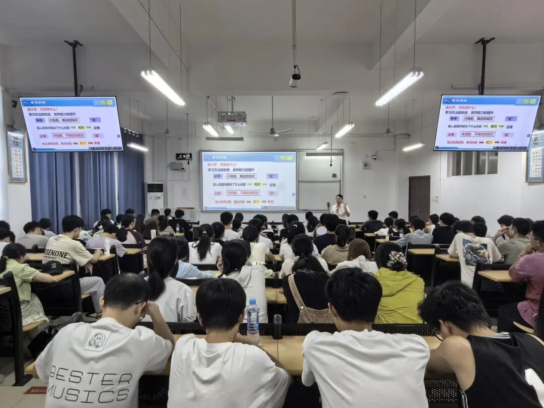 课堂伊始,何洁老师以“大学与中学的核心差异”为切入点,直击新生适应痛点。她明确指出,中学侧重“接受已有知识”,而大学核心在于“探索未知、创造新知”,自学能力的提升与学习方法的转变是适应大学的关键。何老师强调“问出好问题比学到新知识更重要”,鼓励新生以“怀疑的姿态”主动探索,通过“预习-学习-复习”的闭环实现知识“由厚变薄”,为专业学习筑牢基础。