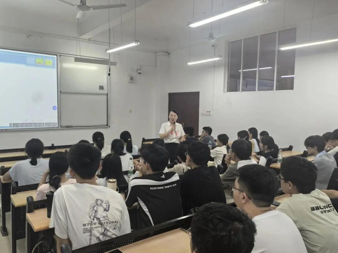 在成长路径指引上,何老师用“1.01³⁶⁵≈1377.4”与“0.99³⁶⁵≈0.03”的公式,生动诠释“坚持的力量”。她鼓励新生从“梳理10件成功与糗事”出发认识自我,在目标引领下保持自律、专注与严谨,“与自己比,每天进步一点,终将厚积薄发”。最后,何洁老师送上真挚寄语:“珍惜时光,汲取养分;滋润梦想,成就人生。”字句恳切,为新生的大学征程注入温暖力量。