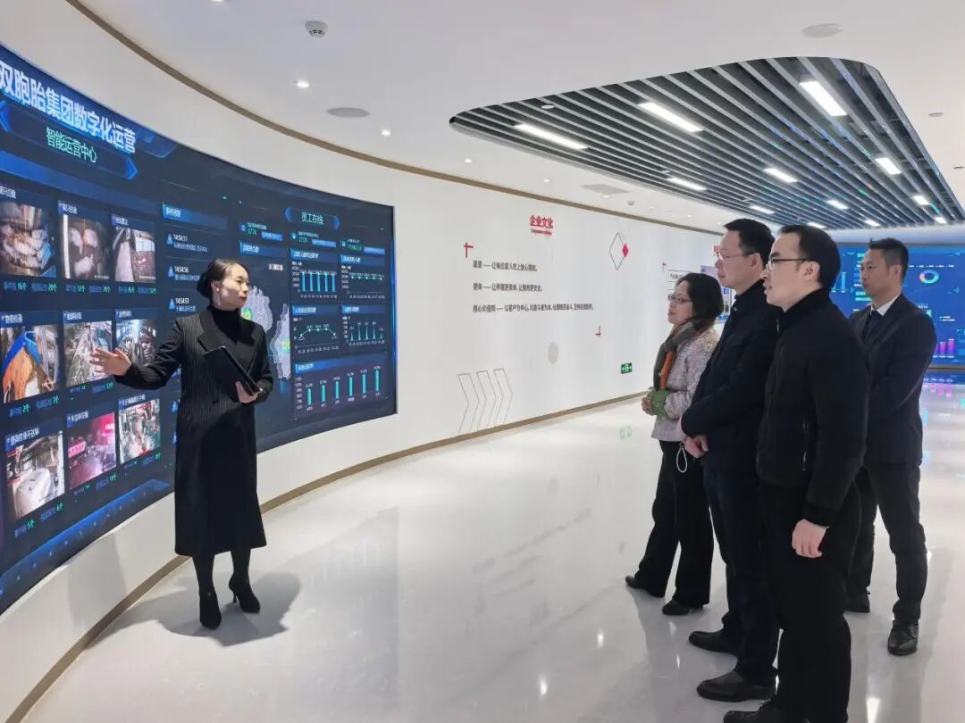 活动伊始,我院一行在集团相关负责人的陪同下,参观了集团产业数字化展厅,直观了解了双胞胎集团在数字化转型、产业布局及科技赋能农业等方面的发展成果,对企业以科技驱动产业升级的理念有了深入认识。